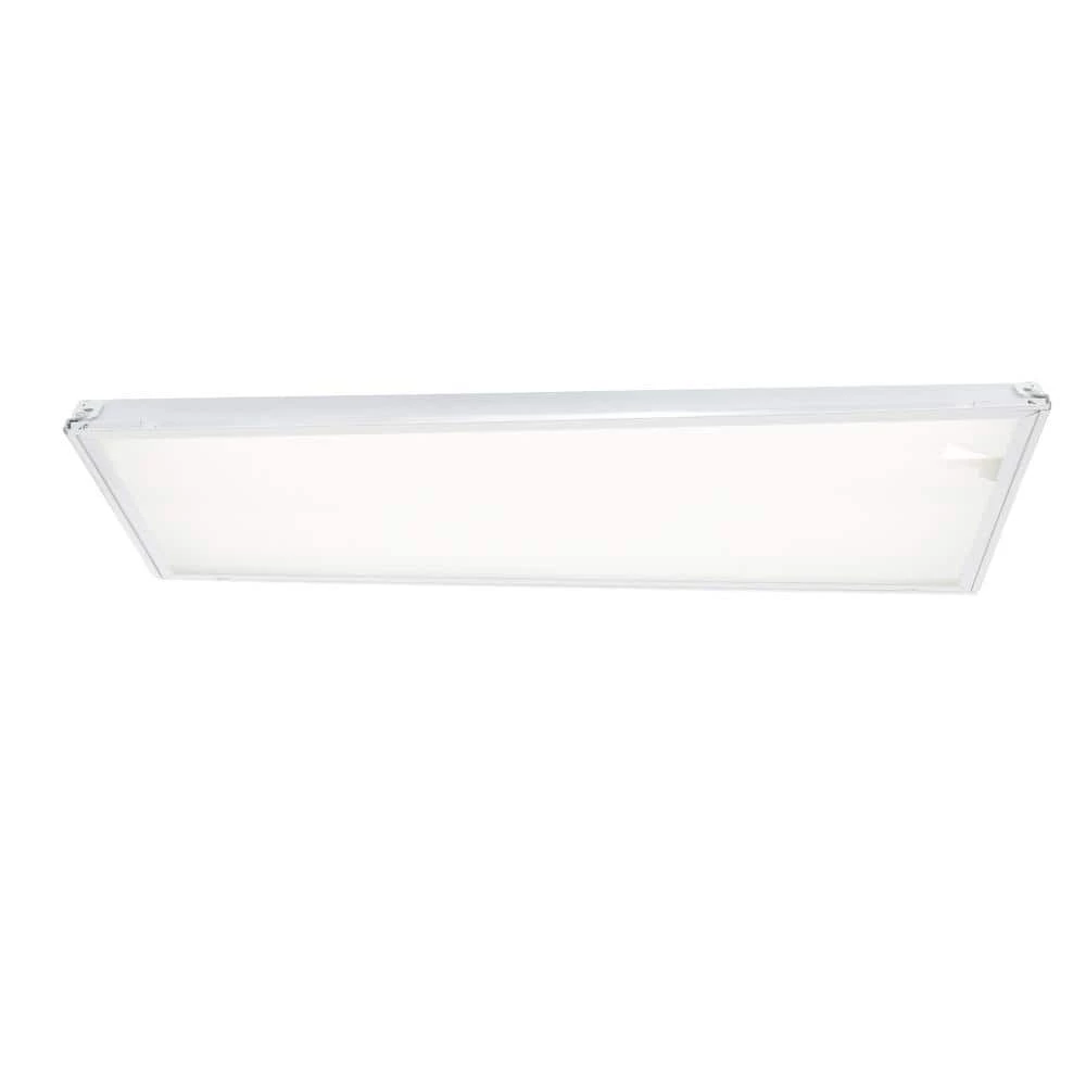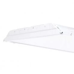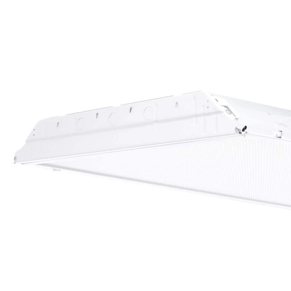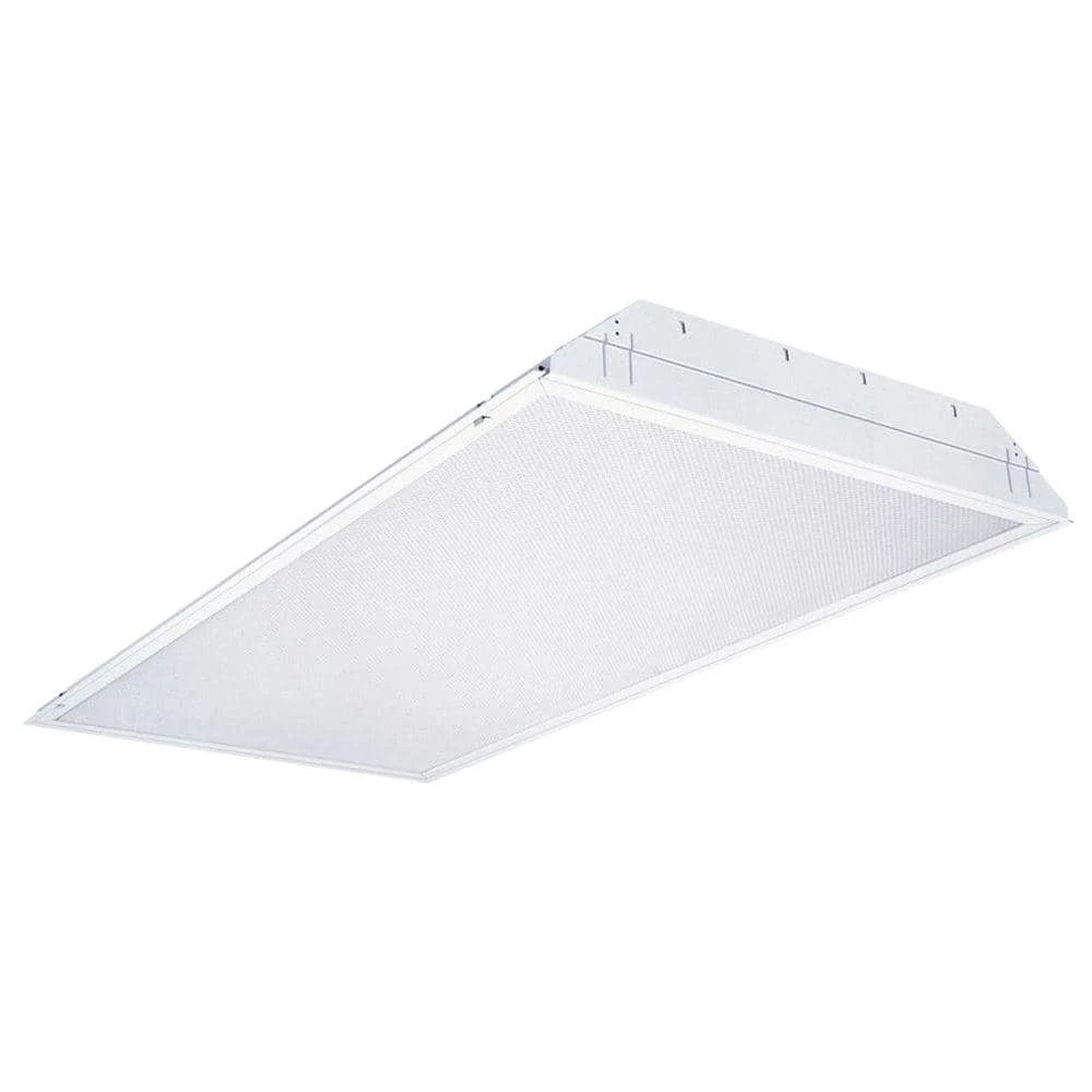 The Lithonia Lighting 4-Light White Fluorescent Troffer comes prewired with lamps installed for easy installation. It features a clear, prismatic acrylic lens and a white steel frame. This low-profile troffer provides general illumination in grid ceiling recessed applications and is ideal for restricted plenum spaces.