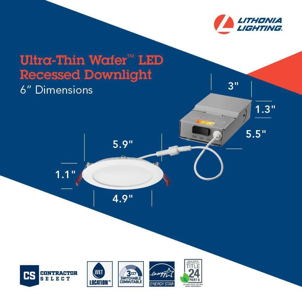 The innovative 6 in., round Wafer Switchable White feature incorporates a switch on each fixture for simple color temperature adjustment. Simply toggle the integrated switch to your desired setting (3000K factory default) setting and you are done. Whatever your application, luminaires with Switchable White are sure to give you the feel and flexibility that you need.