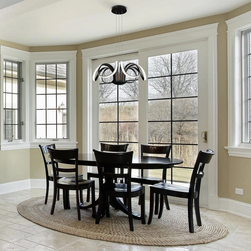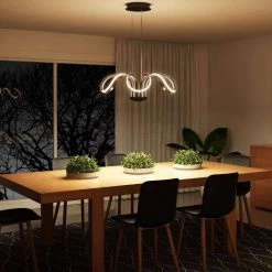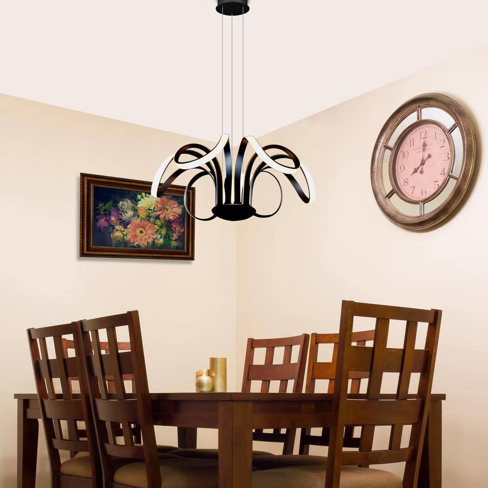 - Unique design: modern flower-shaped LED chandelier with 6 flowing “petals”