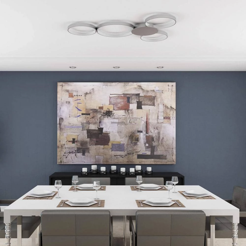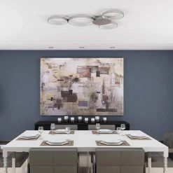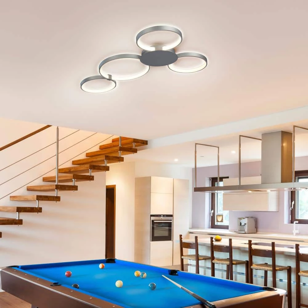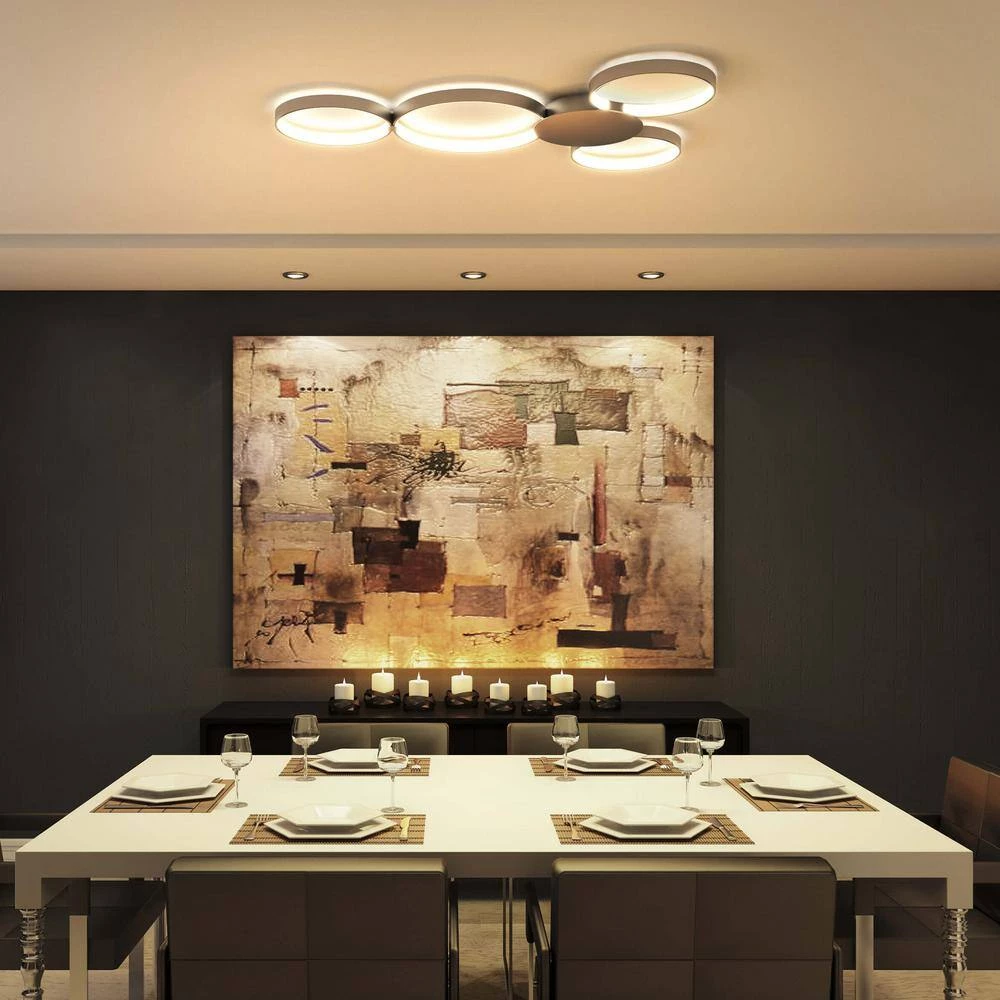 - Unique design: 4-ring modern LED ceiling fixture with indirect, interior glow, and outward finished-aluminum face