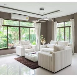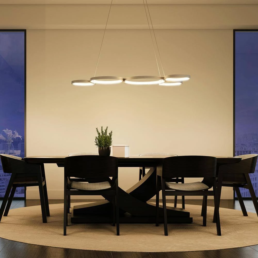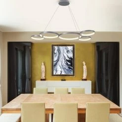 - Unique design: 5-ring modern led chandelier with indirect, interior glow, and outward finished-aluminum face