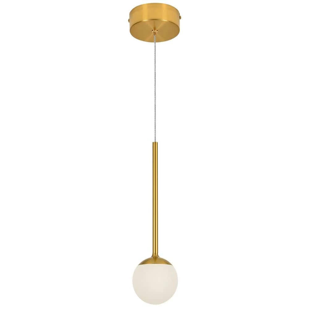 - Design: integrated LED pendant in antiques brass finish with frosted acrylic shade for transitional elegant look