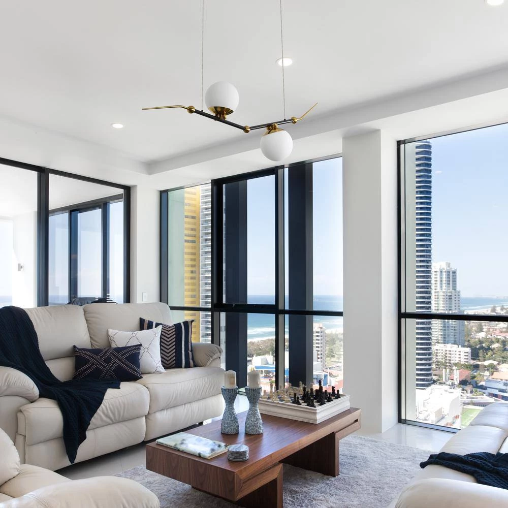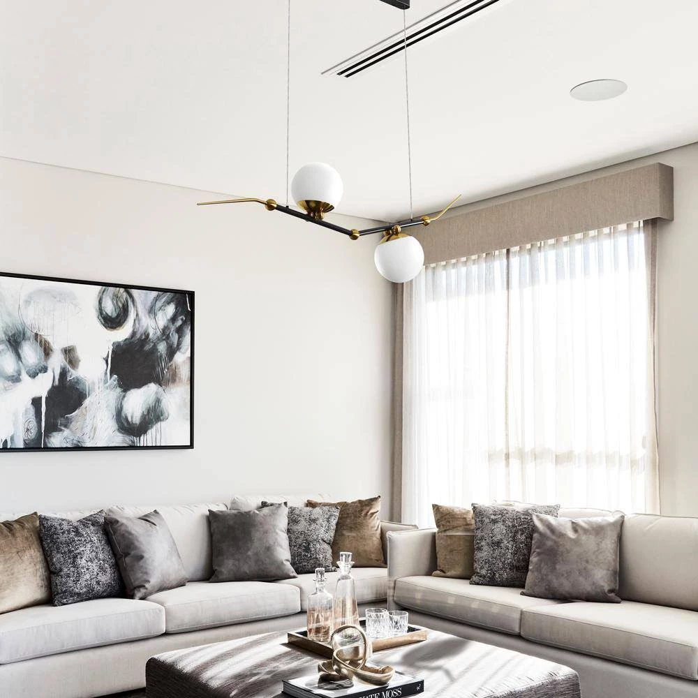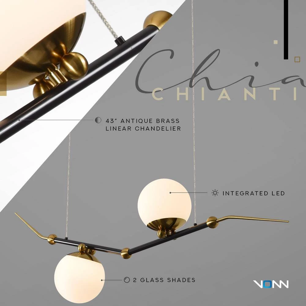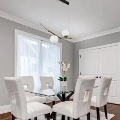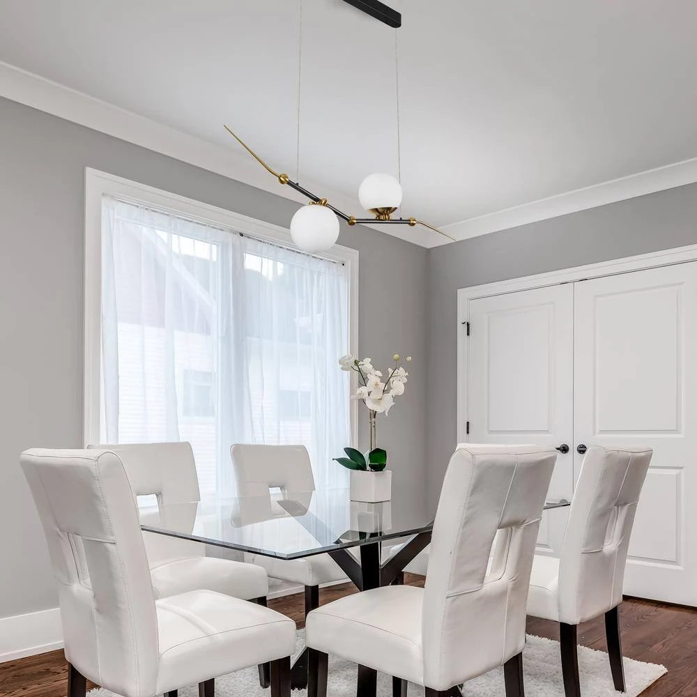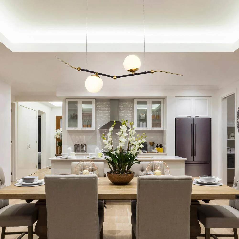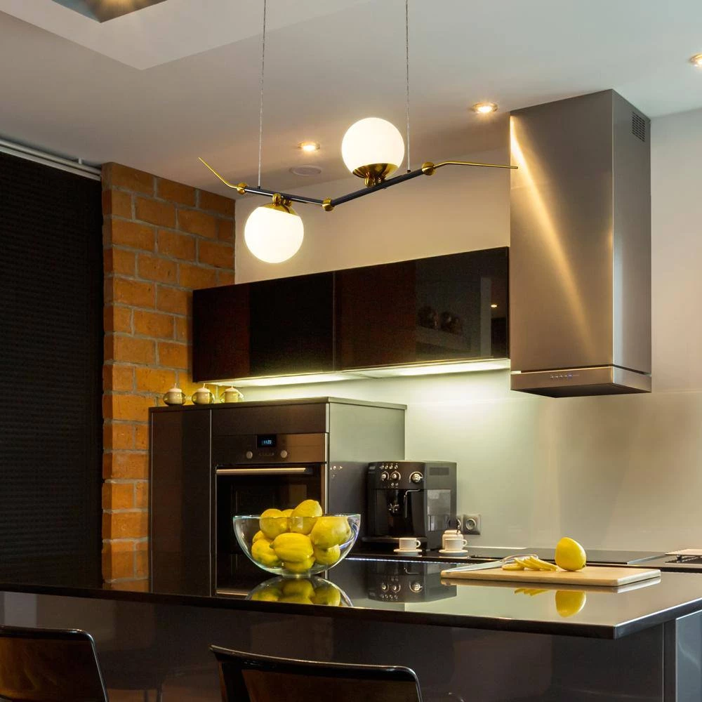 - Design: modern linear pendant with 2 ball shaped glass shades