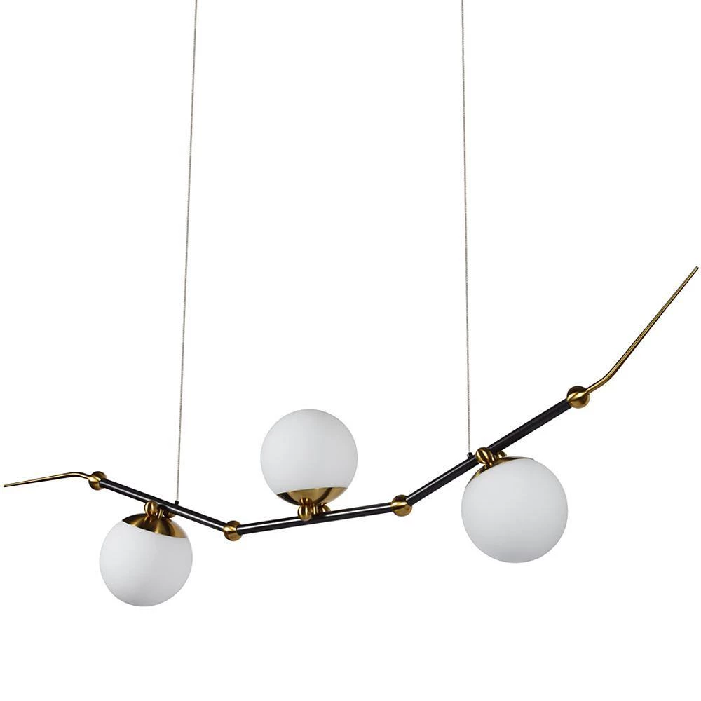 - LED: integrated LED chandelier lighting fixture. Modern Linear Pendant with 3 Ball Shaped Glass Shades