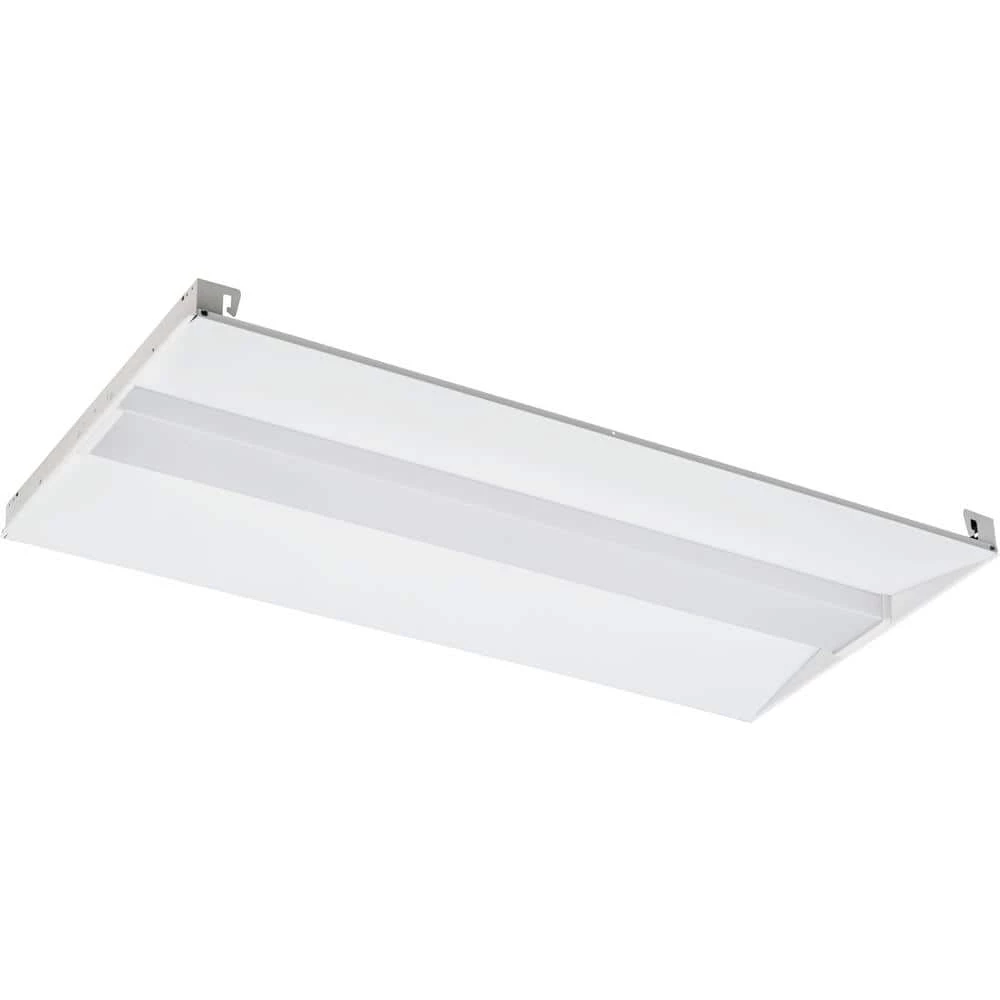 - LED troffer is 2 ft. x 4 ft. and features a square center-basket