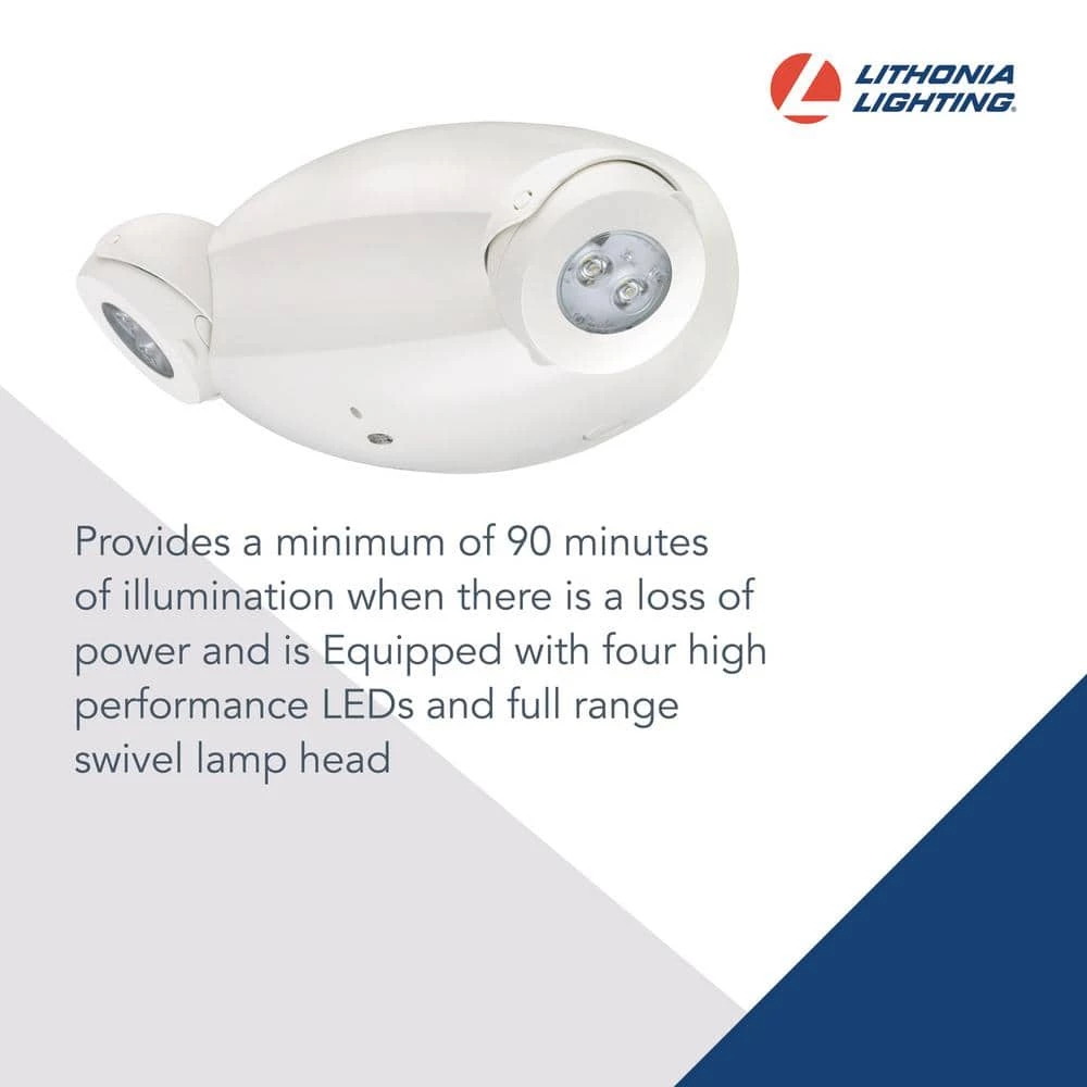 The Quantum Dual Lamp Head LED Emergency Unit from Lithonia Lighting is a slim, general purpose application emergency light. Fully adjustable dual lamp heads allow for light distribution as needed. This unit is ideal for higher mounting height applications requiring attractive equipment with quick installation. It provides a minimum of 90-minutes of illumination upon loss of power.