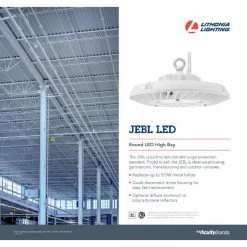 Maintaining your lighting has been made even more affordable with the JEBL LED high bay by Lithonia Lighting. The unique round design of the die-cast aluminum housing makes the JEBL extremely versatile and highly durable. Priced to sell, it is ideal for applications including warehousing, gymnasiums, manufacturing and outdoor canopies. The JEBL delivers comfortable and uniform lighting from mounting heights up to 30 ft.