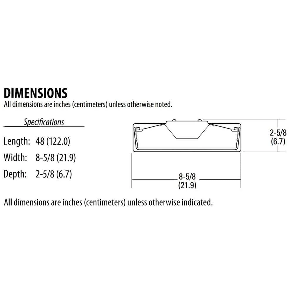 - Dimensions: 48 in. long, 8.63 in. wide and 2.63 in. tall