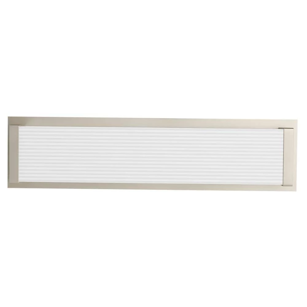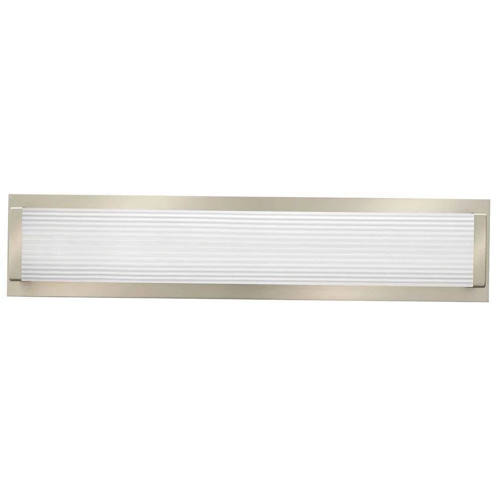 - 24 in. vanity light is constructed of acrylic diffuser with brushed nickel housing