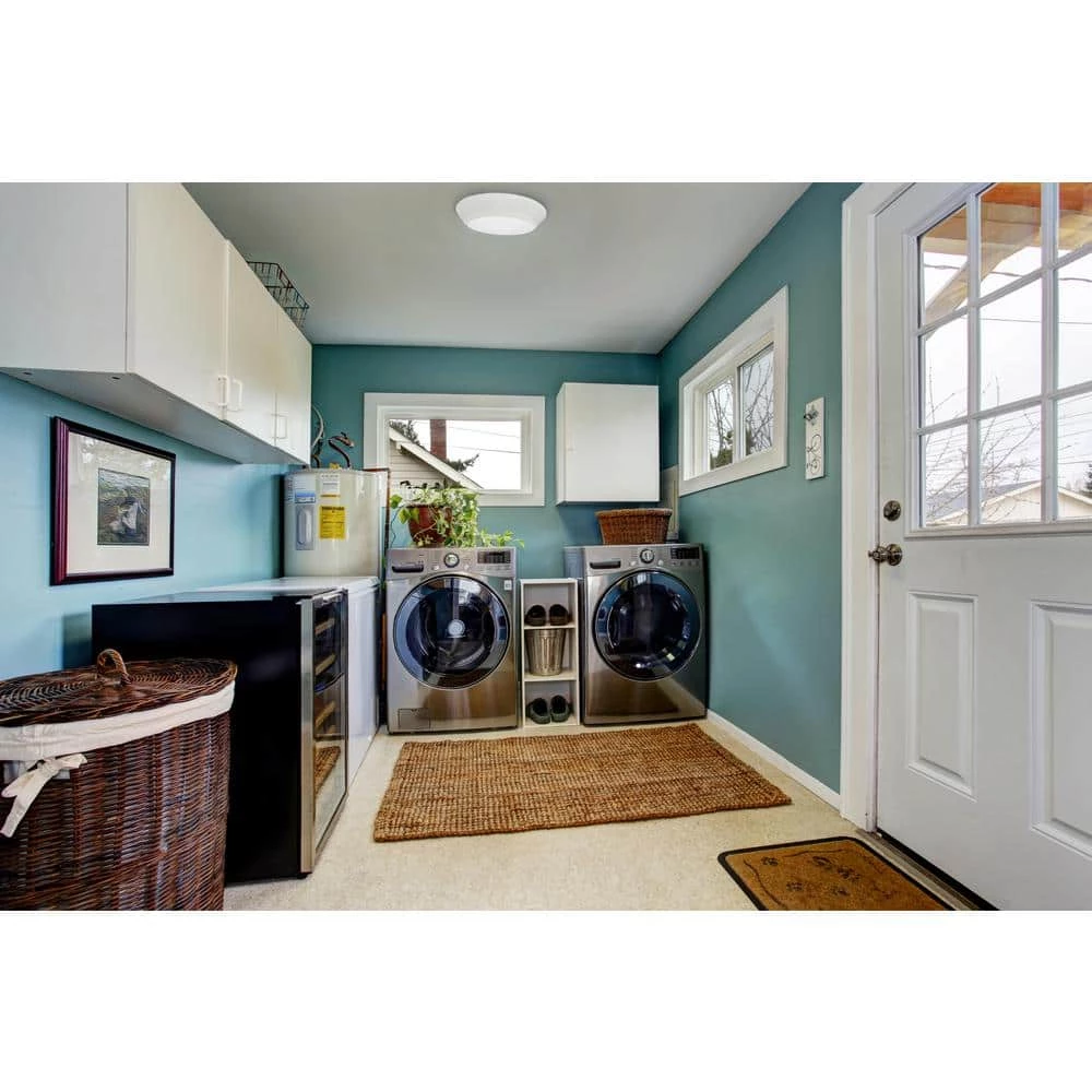 The Versi Lite 13 in. 28-Watt Integrated LED Flushmount fixture from Lithonia Lighting features a contemporary style with a matte white acrylic diffuser and a robust aluminum housing. This fixture combines energy-efficient LED technology with a sleek, compact low-profile design that fits almost anywhere you need light. It is a perfect choice for closets, foyers, hallways, bedrooms, offices, utility work areas, stairways, and many other rooms in the house.