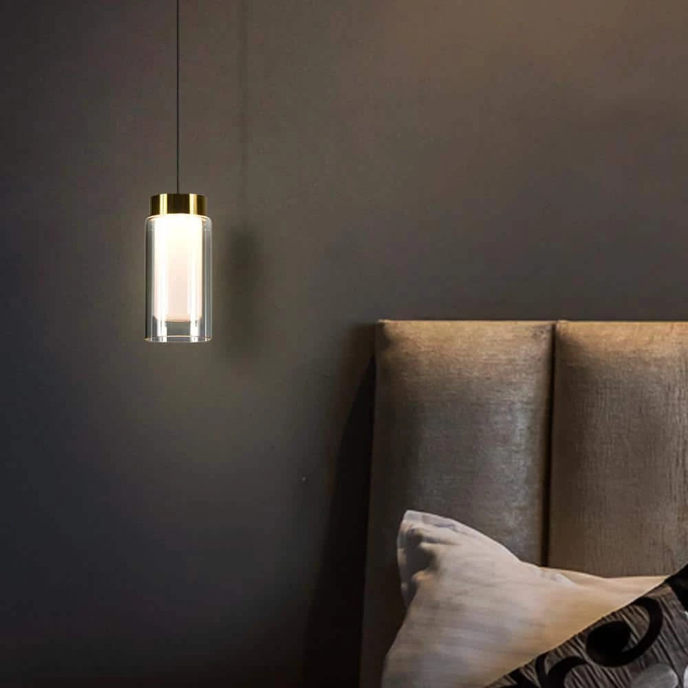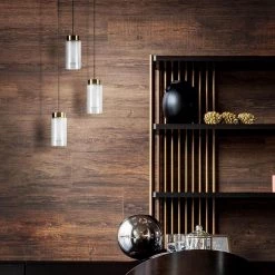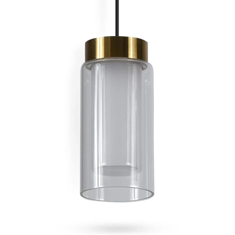 - Design: modern pendant with cone shaped glass shade with antique brass element, the glass shade is clear outside and frosted inside