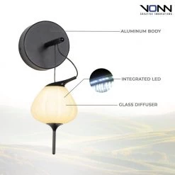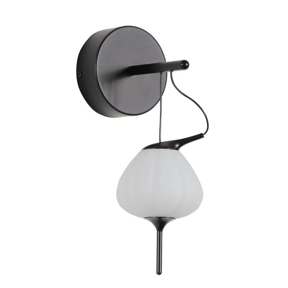 - Design: modern sconce with teardrop shaped white frosted glass shade