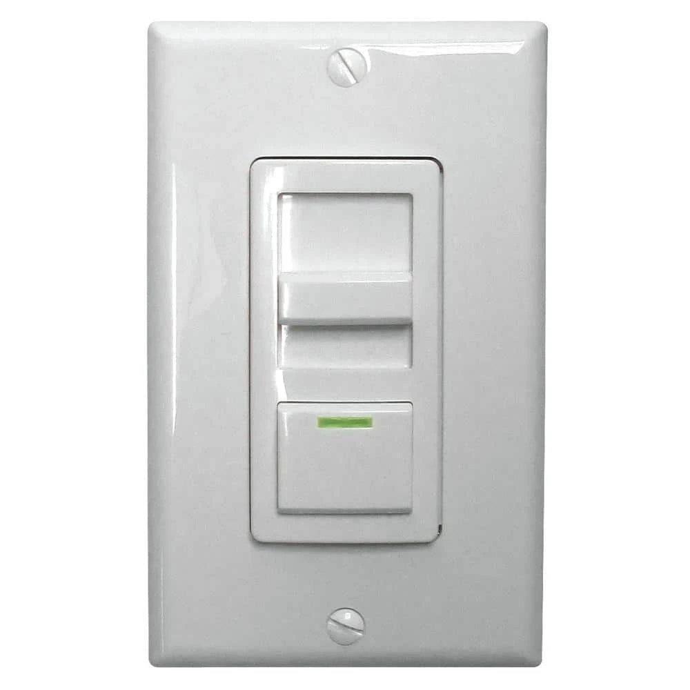 The 0- to 10-Volt Wall Dimmer Switch for the Lithonia Lighting 2 ft. x 2 ft. LED Troffer has a touch slider to control light levels and an on/off switch with a green LED indicator light which allows for switching without disturbing the light level setting. It is designed to fit standard single- or multi-gang switch boxes and is offered in a white finish. This dimmer can also be used to control fluorescent fixtures equipped with four-wire (0-10 VDC) dimming ballasts.
