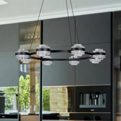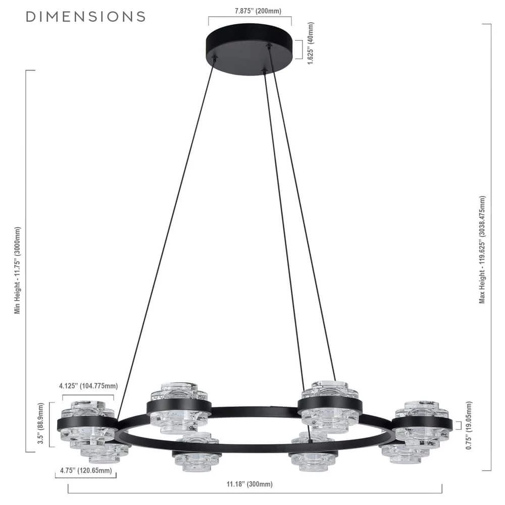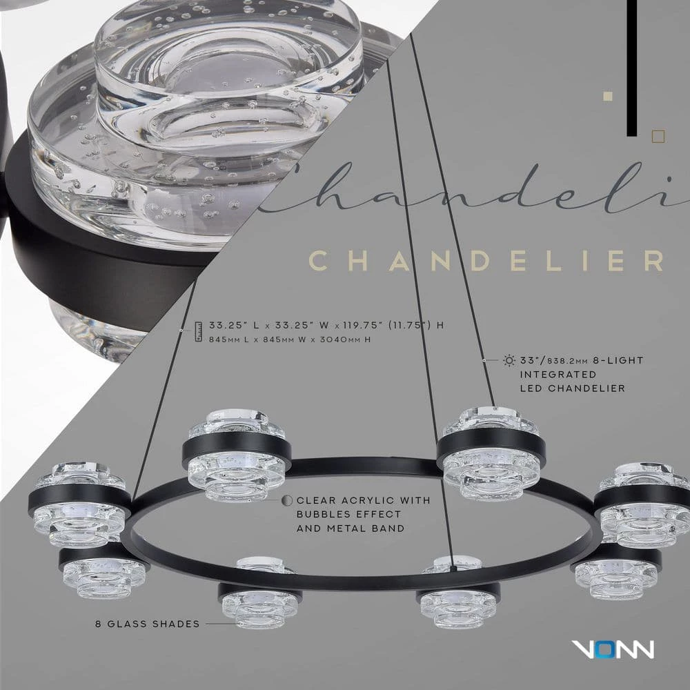 - Design: 33.25 in. W black chandelier with 8 integrated LED lights for exceptionally unique look