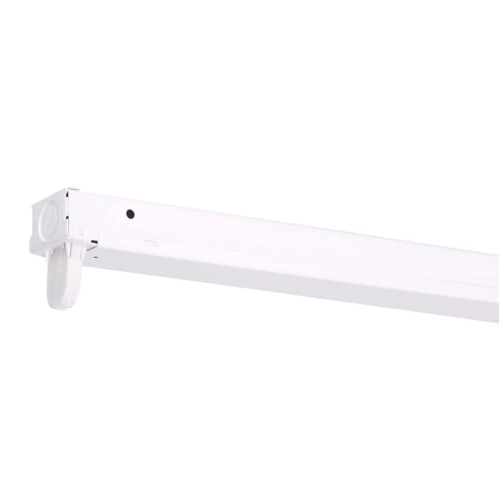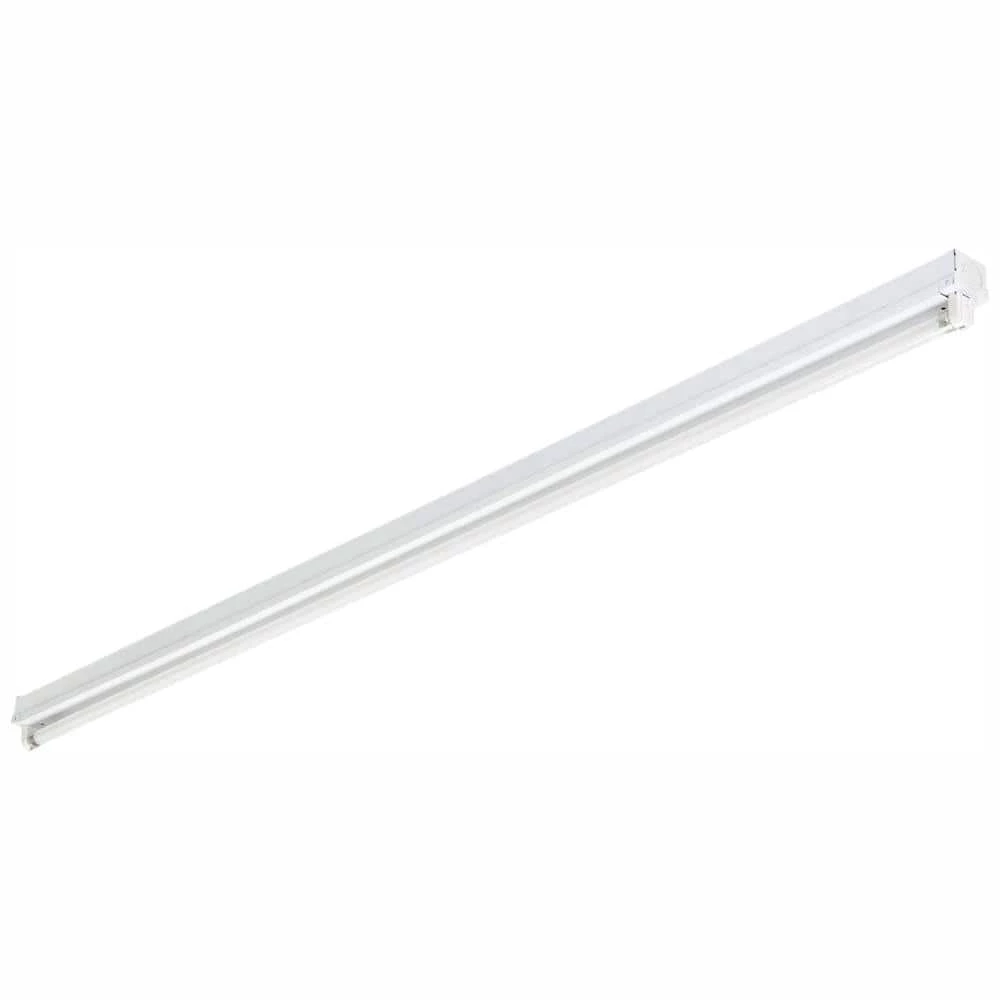 The Lithonia Lighting 1-Light White Strip Light is a non-hooded, 48 in. strip fixture for a single 32-Watt fluorescent bulb. Mounting hardware is included, a bulb is not. Provides general illumination in residential and light commercial applications.