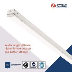 The MNSS high output 8 ft. LED strip light by Lithonia Lighting offers top-of-the-line, energy-efficient LED technology in a traditional strip shape and size. The diffused acrylic lens provides a uniform and glare-free illumination which makes it easy to use in almost any application. The 14,000 Lumens output of the 8 ft. MNSS allows it to be used at higher mounting heights than traditional fluorescent or LED strips. This strip is ideal for commercial, retail, office, warehouse, or display applications.