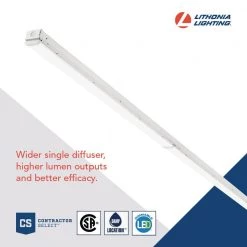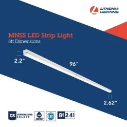 The MNSS 8 ft. LED strip light by Lithonia Lighting offers top-of-the-line, energy-efficient LED technology in a traditional strip shape and size. The diffused acrylic lens provides a uniform and glare-free illumination which makes it easy to use in almost any application. The 11,000 Lumens output of the 8 ft. MNSS allows it to be used at higher mounting heights than traditional fluorescent or LED strips. This strip is ideal for commercial, retail, office, warehouse, or display applications.