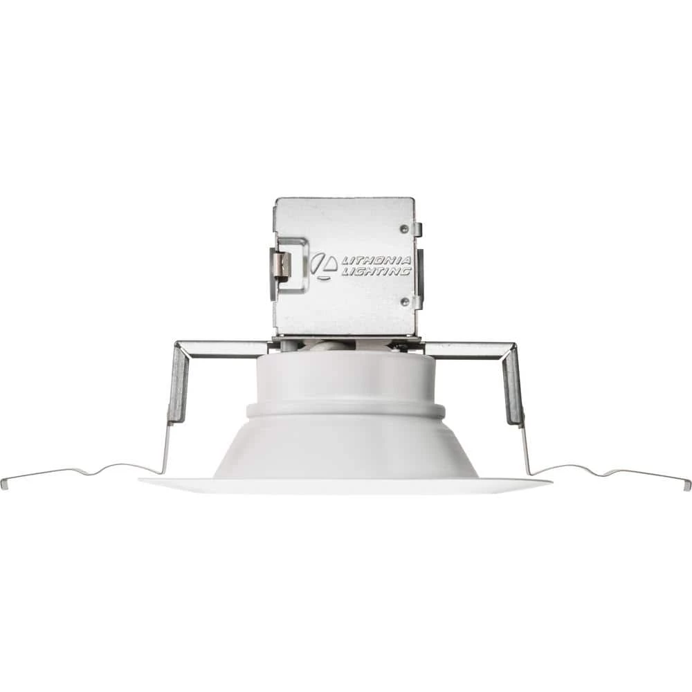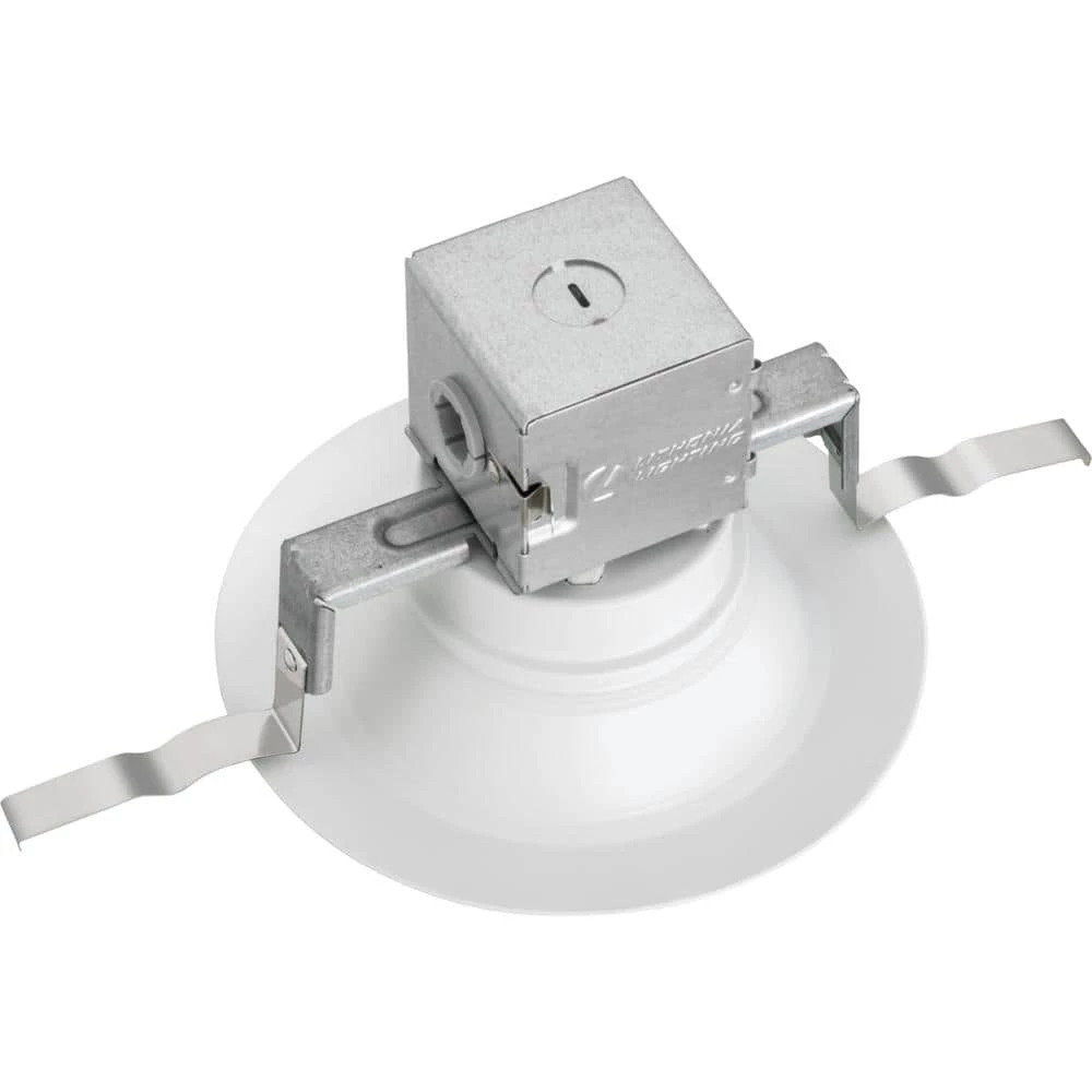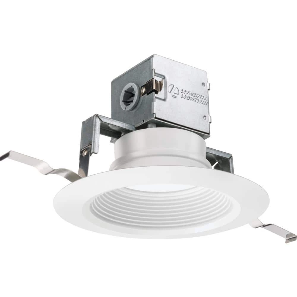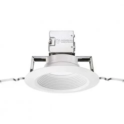 The OneUp recessed direct-wire LED downlights includes integrated junction box, trim, pre-installed non-metallic bushings and 3-port push wire quick connectors in 1-package. The OneUp is the most economical means to create a well lit environment with exceptional energy efficiency and near zero maintenance. Round baffle recesses optical system into the ceiling to prevent glare and provide a traditional look.