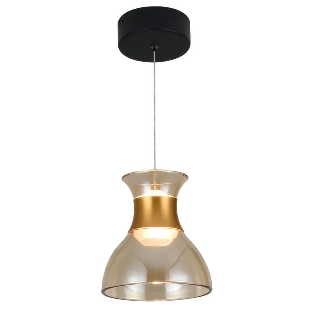 - Design: integrated LED pendant with black canopy, Cognac glass shade and gold element for elegant look