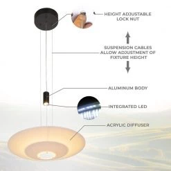 - LED: integrated LED fixture design: modern pendant with aluminum shade in white