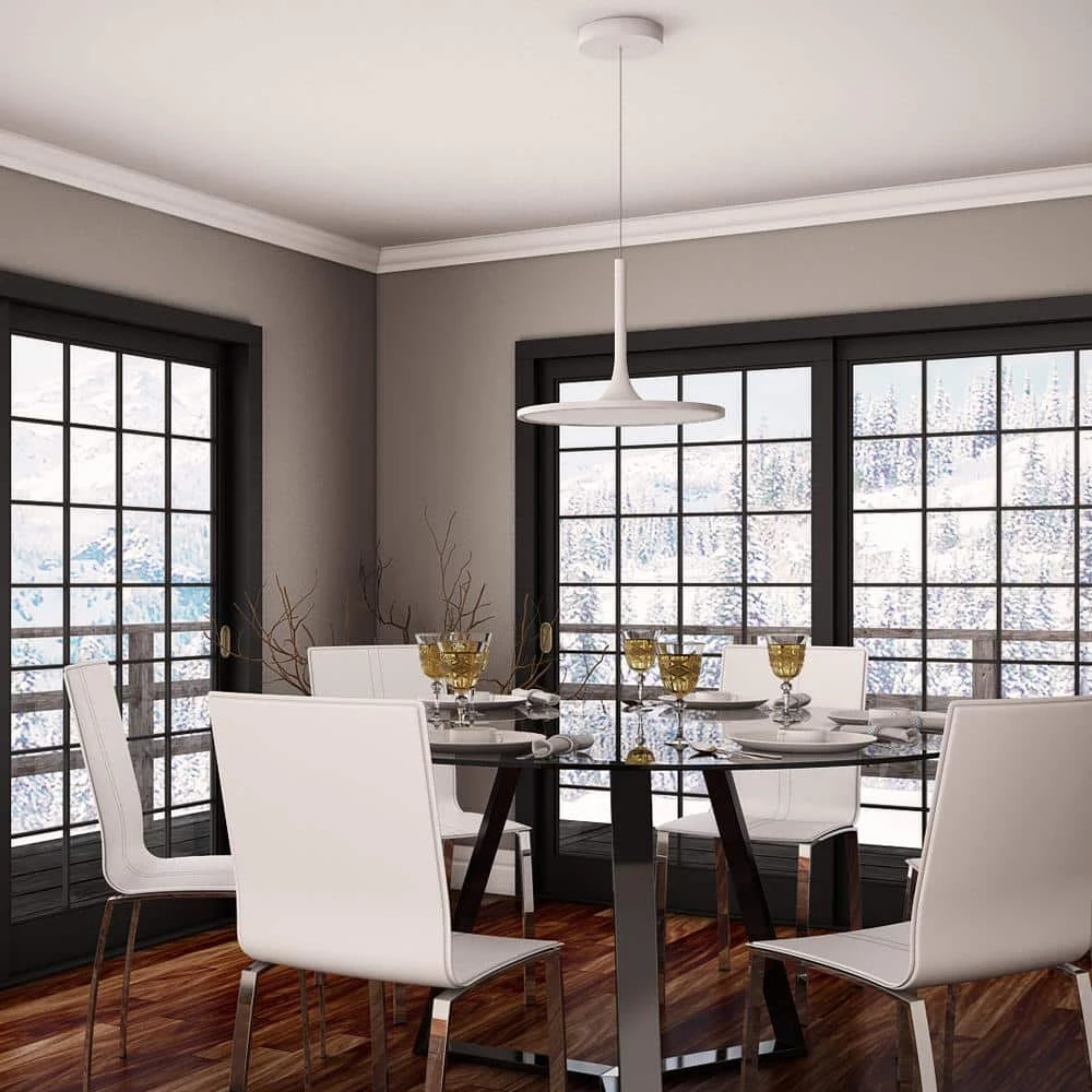 Within fashion and design, solid circular shapes are used to symbolize union and completeness. They draw the eye in and convey a certain sense of accord. This state of harmony is also felt in the Salm collection by VONN lighting; it is the centerpiece of precious family gatherings that are remembered for a lifetime.