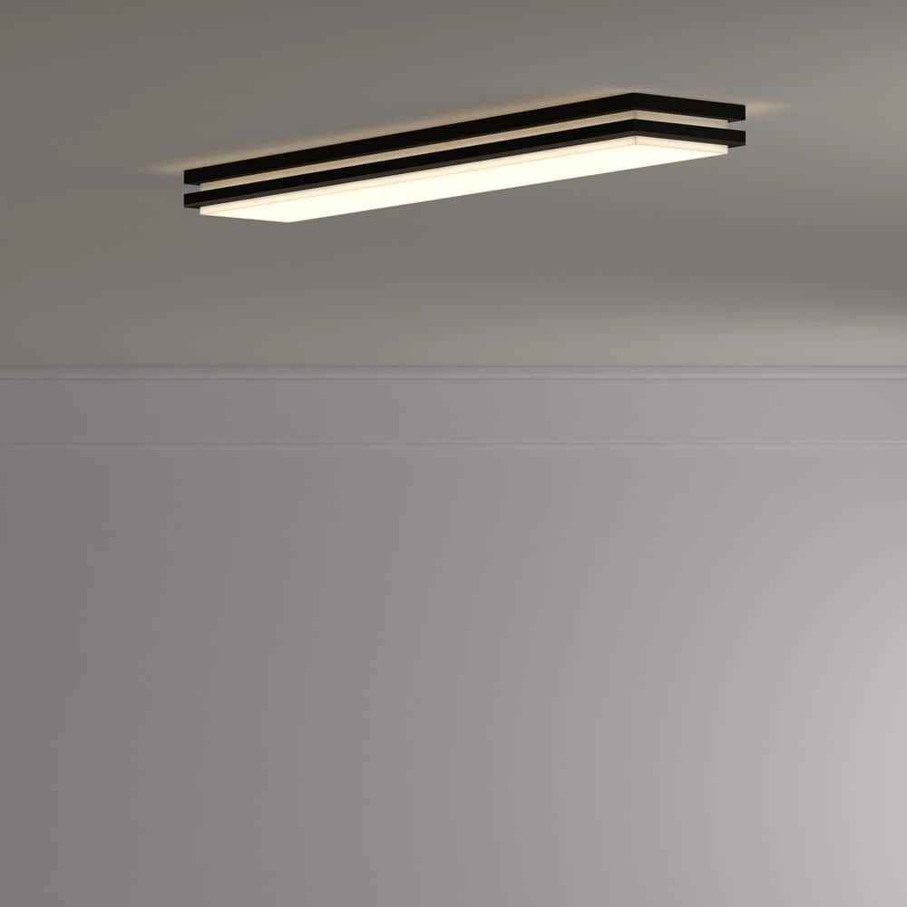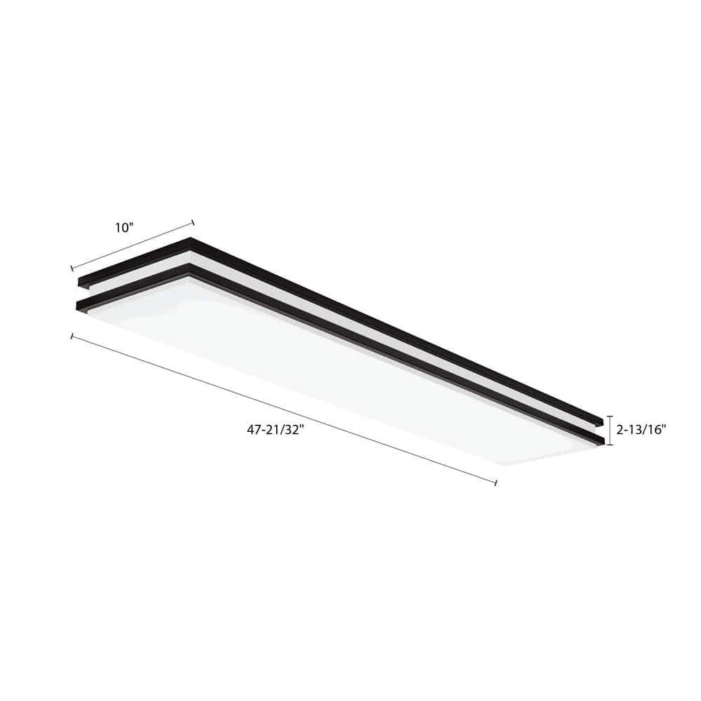 The Saturn 4 ft. Bronze LED Linear Flush Mount offers general ambient lighting with a modern decorative design. The LED engine delivers a long life of energy savings and reduced maintenance. This fixture is rated to deliver 50,000 hours of performance. The sanded white acrylic diffuser provides 2,500 lumens while softening the appearance of the LEDs. This fixture is ideal for both residential and light commercial applications such as kitchens, offices, corridors, waiting areas and more.