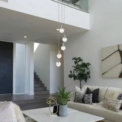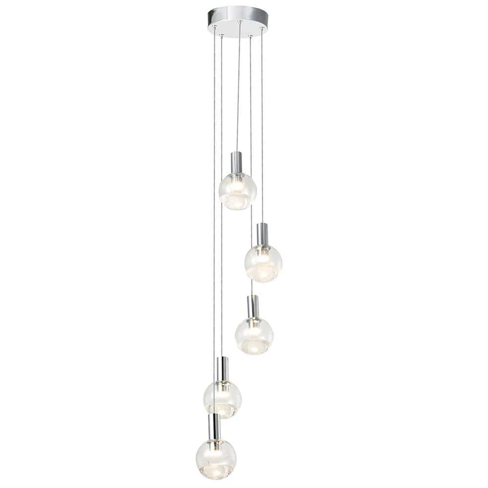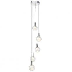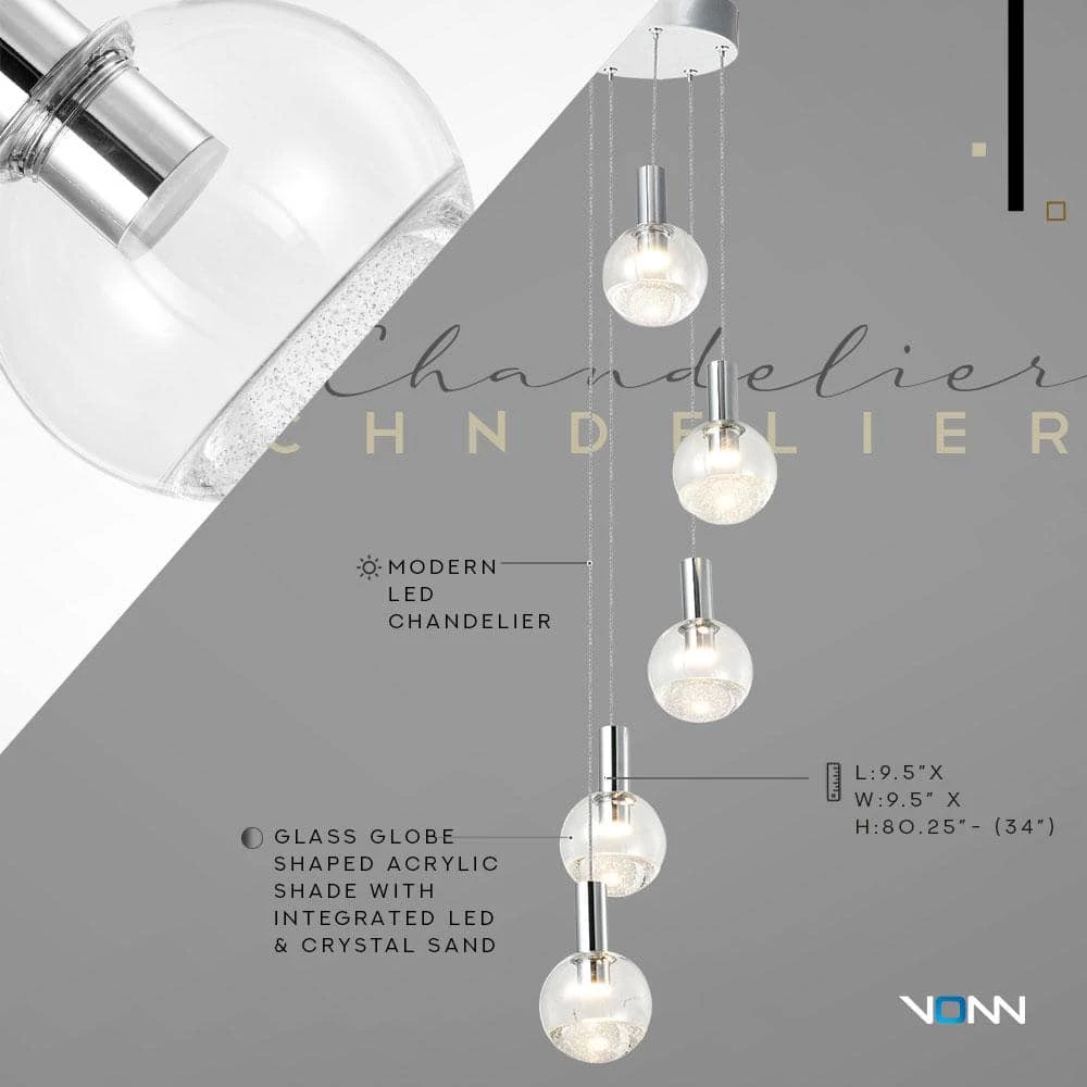 - Design: modern chandelier with ball shaped glass shades, the glass shades are clear with glitter accent and polished chrome top, canopy is polished chrome