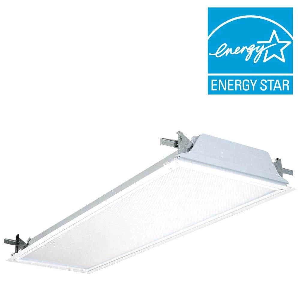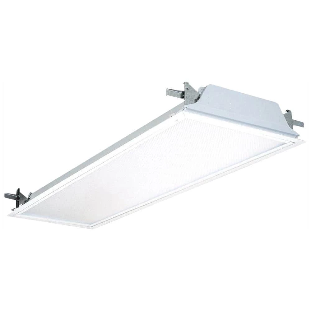 The Lithonia Lighting 2-Light Flanged Troffer is designed for use in drywall ceilings and can be used for general illumination. This troffer features a low-profile design and uses two 32-Watt T8 lamps (not included). The A12 lens features reverse apex technology for superior lamp obscuration and improved visual comfort.