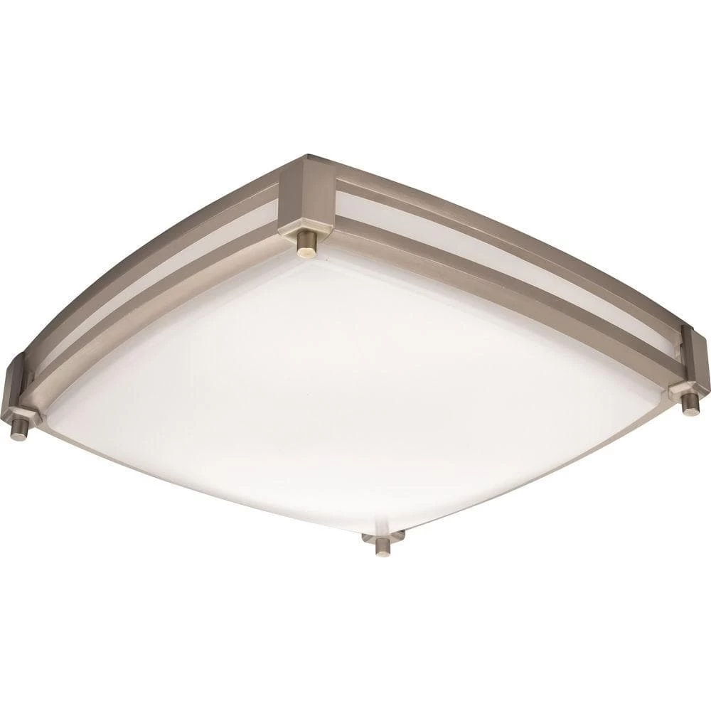 The Brushed Nickel decorative LED Saturn Square Flush Mount from Lithonia Lighting features an acrylic diffuser with a sleek, compact design. Choosing this energy-efficient LED lighting solution over incandescent will save you money on operating costs. Best of all, the LEDs last 50,000 hours, so it is virtually maintenance free. Ideal for hallways, bedrooms, offices, stairways and many more commercial or residential applications.