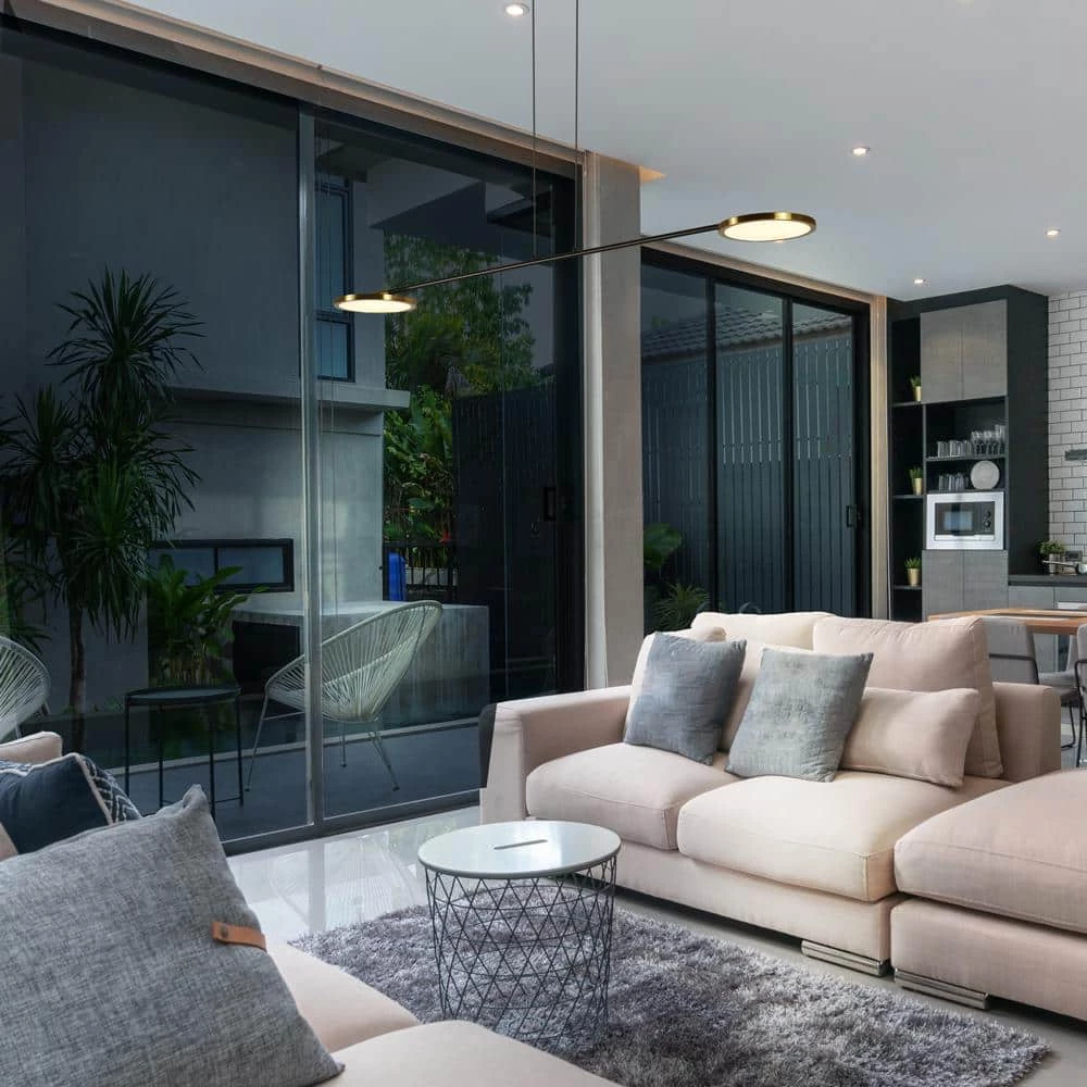 - Design: modern pendant with rotating LED circular disks