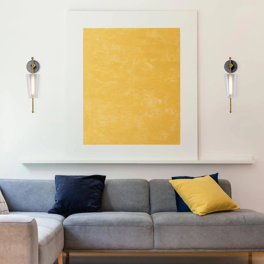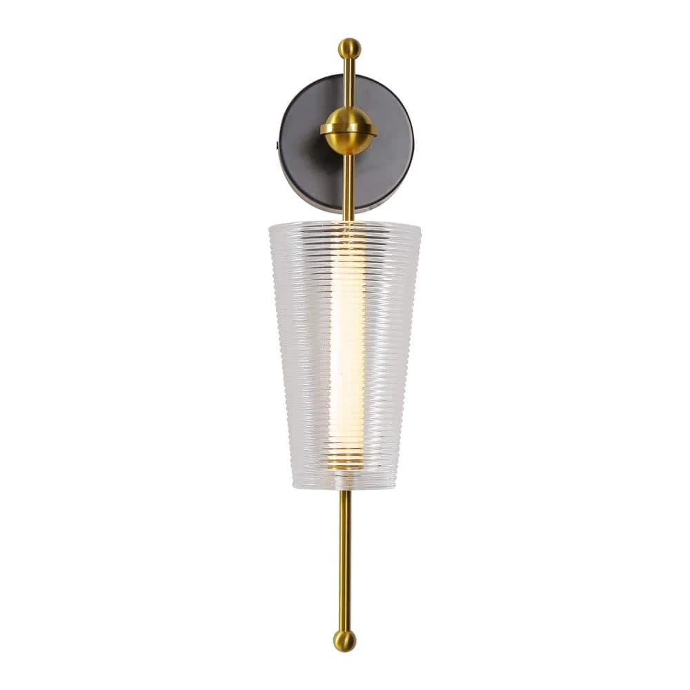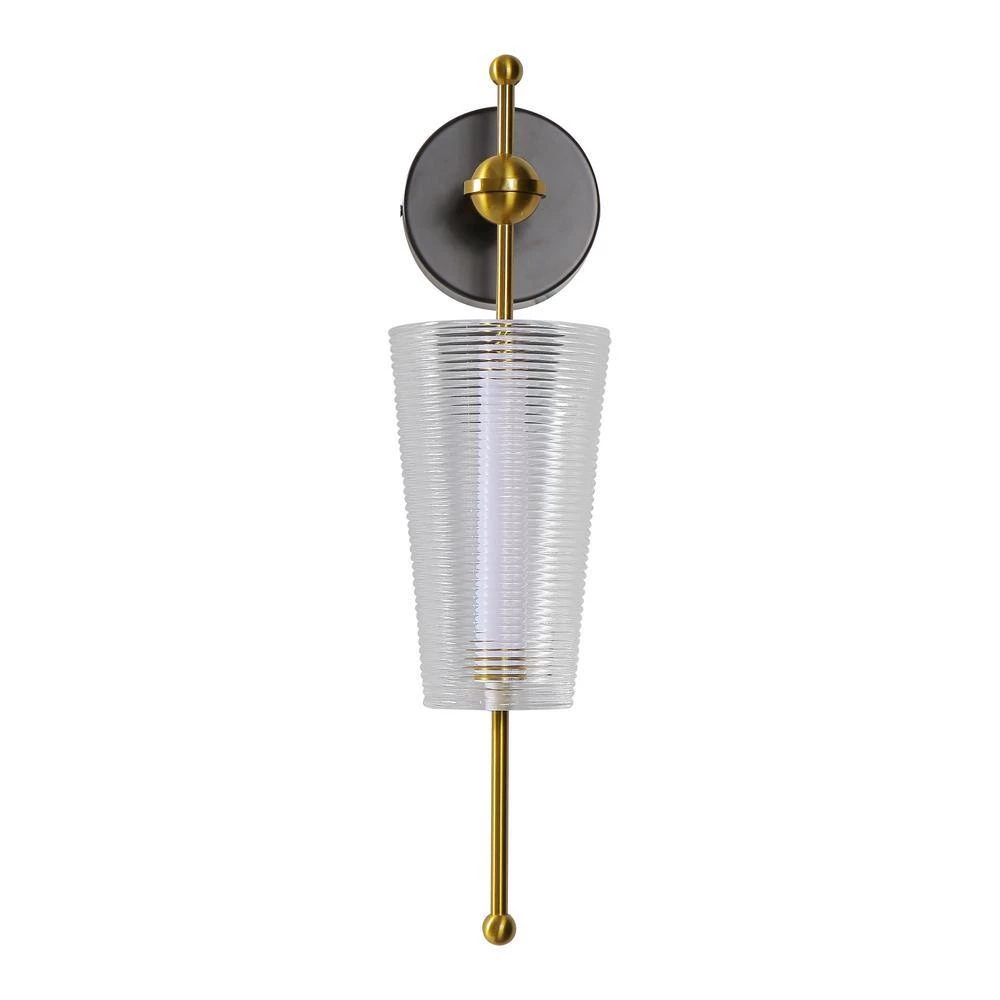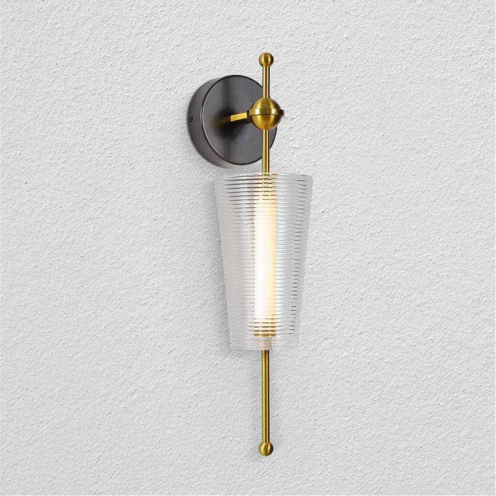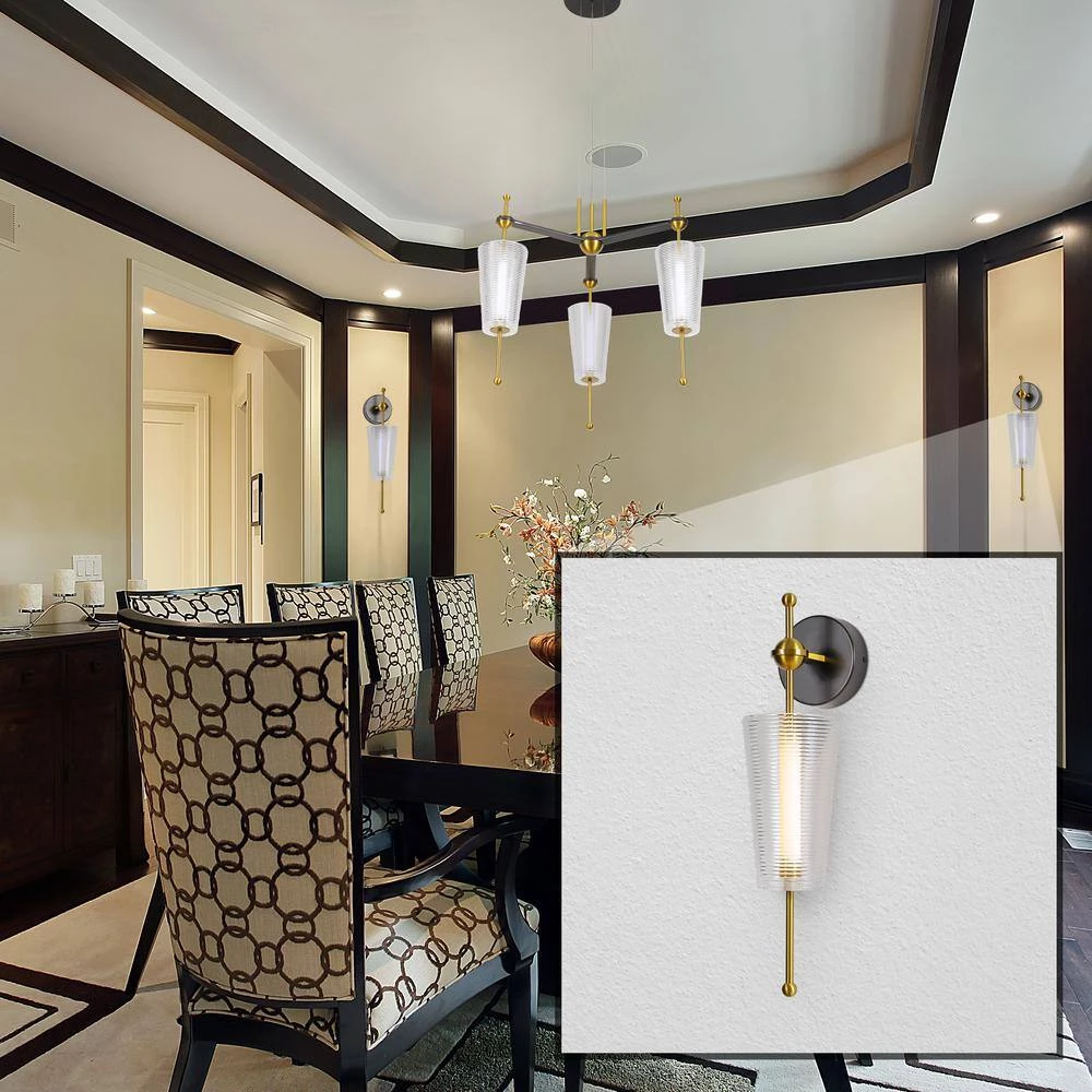 - Design: modern sconce with cone shaped clear frosted glass shade