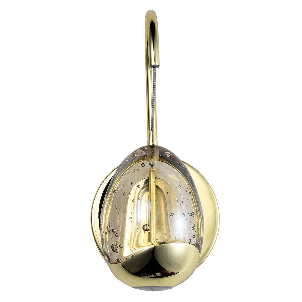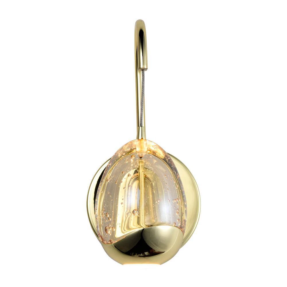 - Design: modern sconce with oval shaped glass shade, the glass shade is clear with bubbles accent and gold bottom